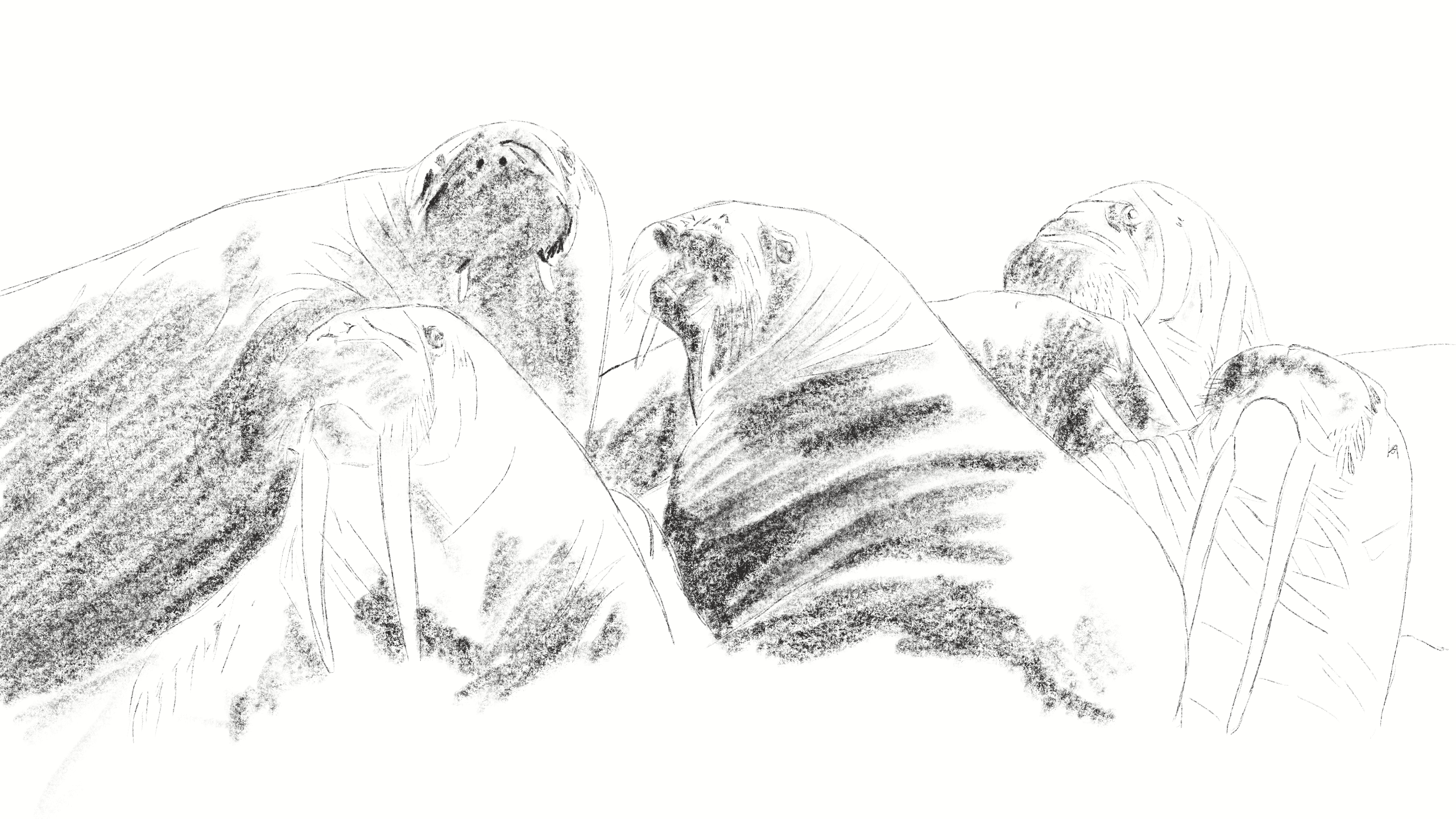 Walruses are extremely social and often gather in large, noisy groups. They communicate through grunts, bell-like knocks, and underwater clicks, and spend long stretches resting shoulder to shoulder.