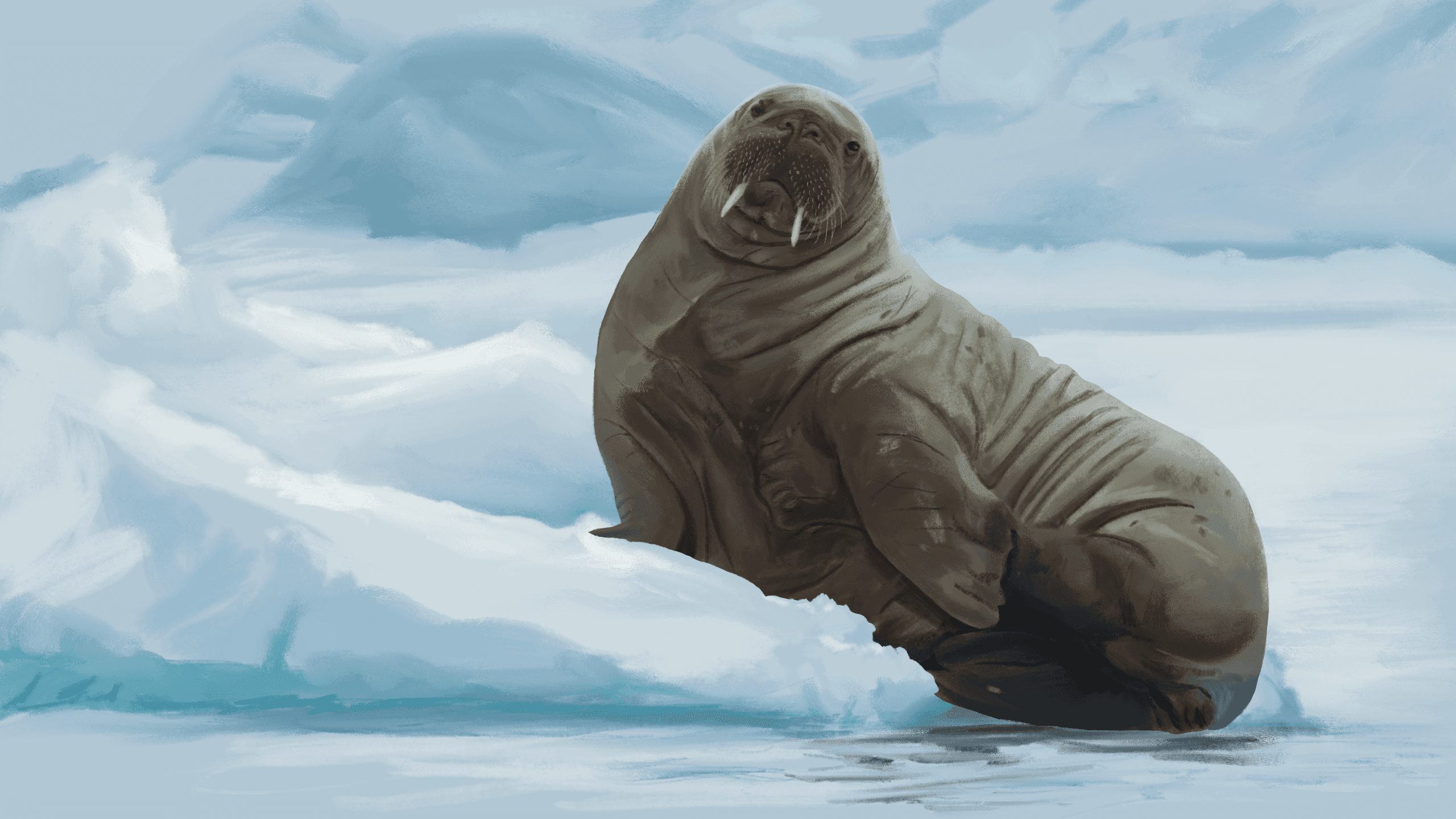 Walruses are large Arctic marine mammals with long tusks, wrinkled skin, and dense bristles of whiskers. Built for cold water and slow movement, they spend much of their lives resting between dives to the seafloor.